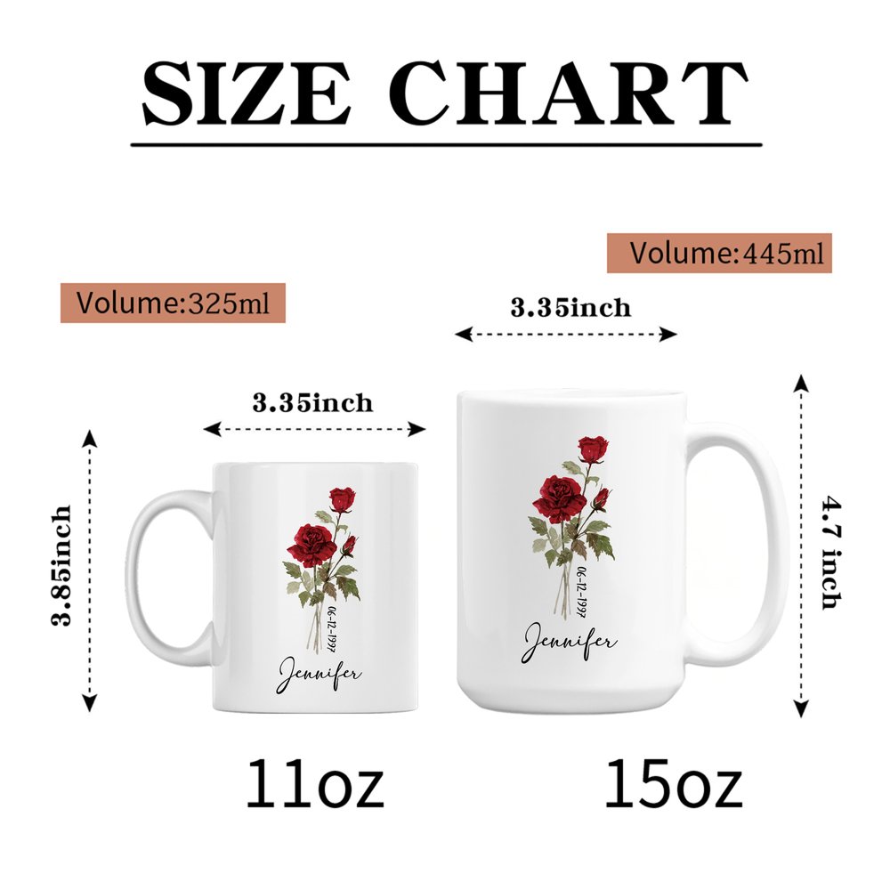 De mok heeft een geboortebloem in aquarelstijl, samen met de verjaardagsdatum, naam en aangepaste groeten, waardoor de eentonigheid van gewone mokken wordt doorbroken. Elke maand heeft zijn eigen unieke verjaardagsbloem, die speciale gelegenheden nauwkeurig markeert. Het artistieke ontwerp straalt een gevoel van individualiteit uit, waardoor het een unieke en gedenkwaardige mok is voor dagelijks gebruik of voor op je bureau.