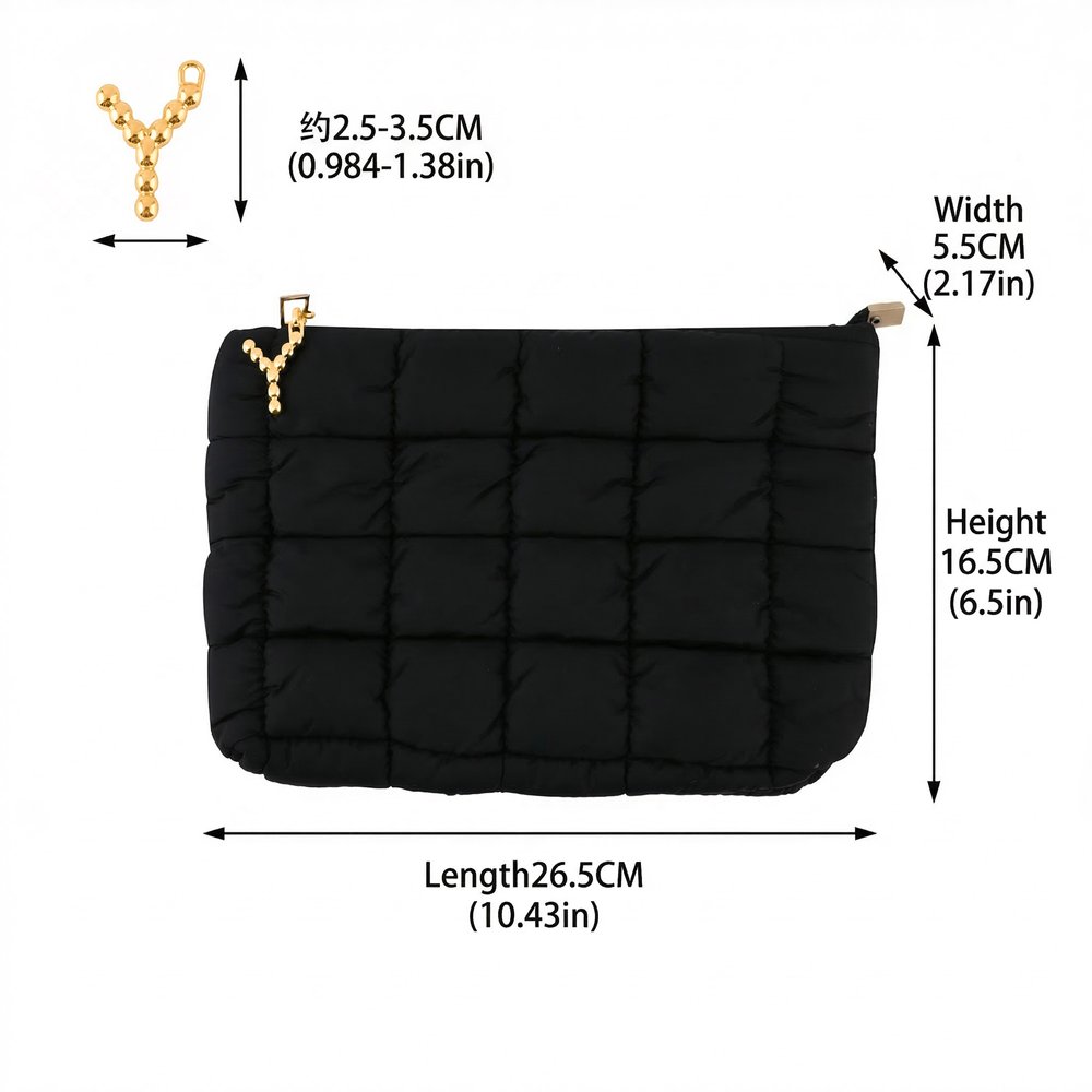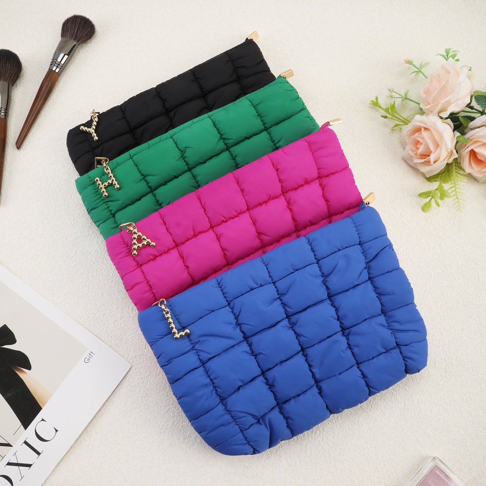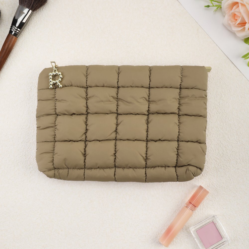 Dit chique gewatteerde tasje heeft een prachtig eigen ontwerp dat wordt benadrukt door een parelmoeren initiaalbedeltje. Je kunt elke letter kiezen om een unieke gepersonaliseerde hanger te maken, die een exclusief en hartelijk tintje toevoegt. De opvallende metalen bedel met parelletter dient als onderscheidend kenmerk en verandert een eenvoudig make-uptasje in een uniek accessoire dat je persoonlijke stijl weerspiegelt en geschenken veel betekenisvoller maakt.