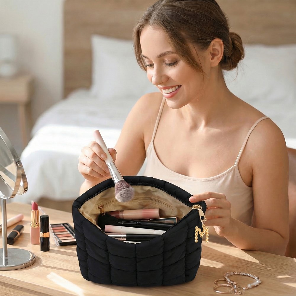 Dit gewatteerde tasje is gemaakt van een eersteklas polyester-katoenmix en voelt zacht en licht aan met een uitzonderlijke duurzaamheid. De stof is kreukherstellend, gemakkelijk schoon te maken en zacht voor de gevoelige huid, terwijl de ademende structuur je spullen veilig en goed beschermd houdt. Deze mix zorgt ervoor dat de buidel na verloop van tijd zijn pluchen, gezwollen vorm behoudt, waardoor het zowel een stijlvol als duurzaam accessoire is voor dagelijks gebruik en op reis.